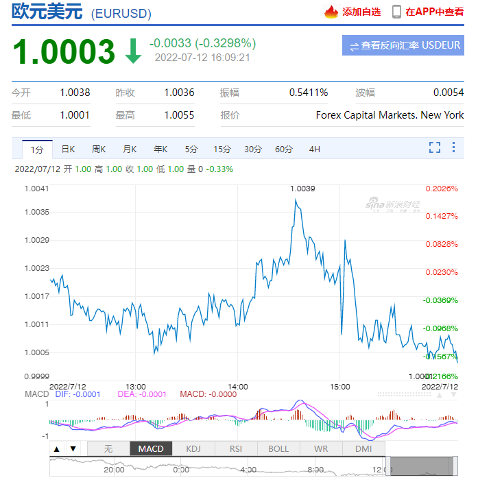 2022年7月12日,出现于欧洲外汇市场的这个历史性等号迅速成为全球热点,这是自2002年12月以来欧元首次与美元平价。